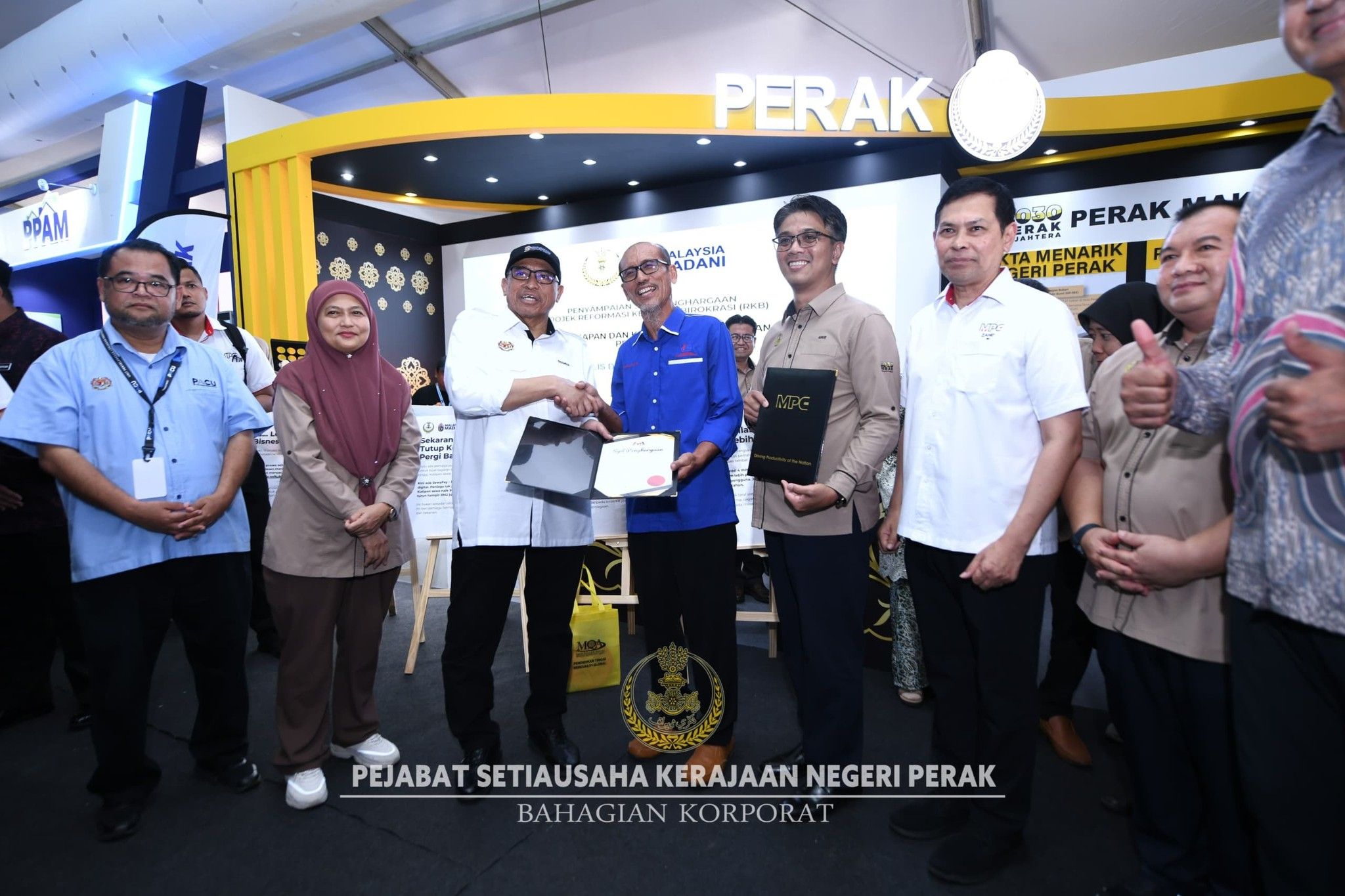 Hadir sama, YB Dato' Ahmad Suaidi bin Abdul Rahim, Setiausaha Kerajaan Negeri Perak; YB Dato' Mohd Zaki bin Mahyudin, Pegawai Kewangan Negeri Perak; YBhg. Dato' Nor Sham binti Rahman, Timbalan Setiausaha Kerajaan Negeri Perak (Pengurusan); YBhg. Datuk Zahid bin Ismail, Ketua Pengarah Perbadanan Produktiviti Malaysia (MPC); YBrs. Puan Halizah binti Sipun, Timbalan Setiausaha Kerajaan Negeri Perak (Pembangunan); YBrs. Tuan Mohd Ainurridha bin Ahmad Majdi Setiausaha, Majlis Daerah Perak Tengah; YBrs. Encik Shazree Idzham bin Wahab Abdul Rahman Yang Dipertua, Majlis Daerah Tanjong Malim dan YBrs. Encik Muhammad Faizal Shah bin Safian Suri, Yang Dipertua, Majlis Perbandaran Manjung