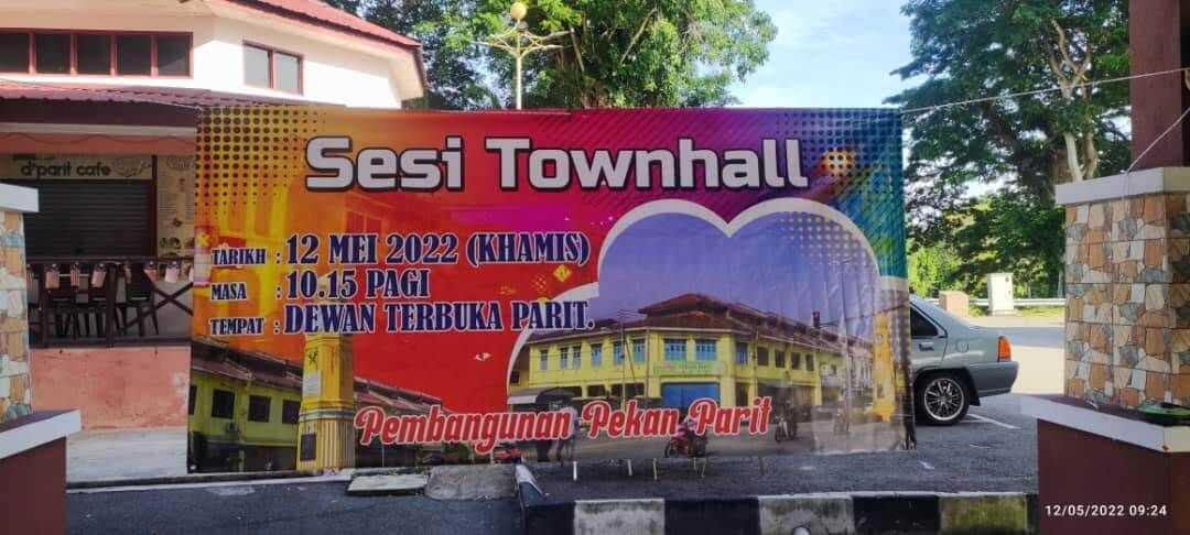 12 Mei 2022 - MDPT telah mengadakan sesi town hall bersama peniaga di pekan Parit di Dewan Terbuka Parit. Pada sesi ini pihak MDPT telah membentangkan berkaitan pembangunan pelancongan pekan Parit. Antara tarikan yang sedang dilaksanakan papan tanda Parit dan dataran pekan Parit.